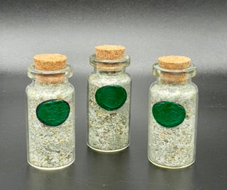 This particular salt blend digs deep into the earth roots to remove the blockages standing in our way and allow for the prosperity, luck AND abundance we deserve to find us. Blended 4/2/23, Aries Sun Virgo Moon. Ideal conditions to summon our blessings. Sold in .5oz corked glass bottle.