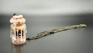 Get down && vibe with ur dope self! Lil's self love spell jar amulet is here to support you in channeling vibes of ultimate self adoration to help you feel urself the way you deserve. Ur royalty. Self love spell jar amulet worn as a necklace. Color bronze. Approx 17 inches. The only one.