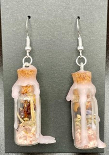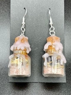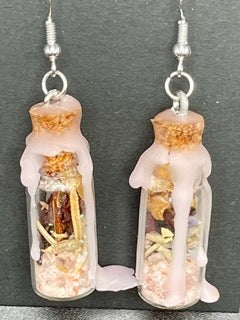 Get down && vibe with ur dope self!! Lil's self love spell jar earrings are here to support you in channeling vibes of ultimate self adoration to help you feel urself the way you deserve. Ur royalty. Earrings available in multiple variants.